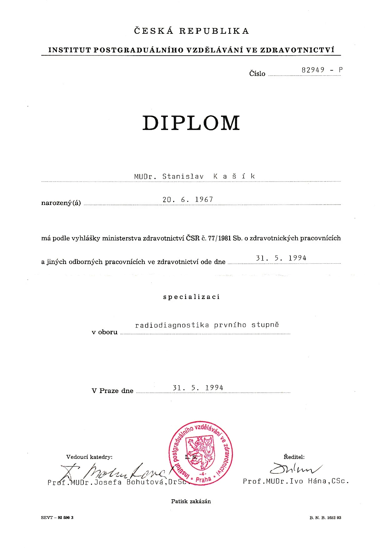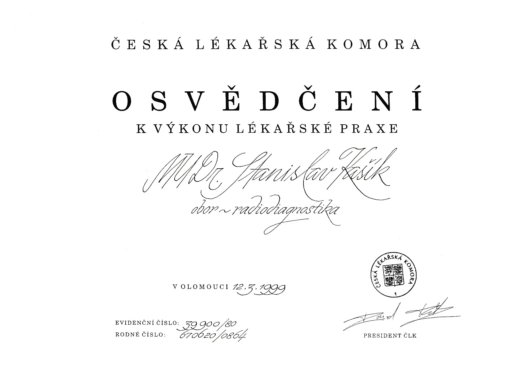 Mám bohatou praxi v čele radiodiagnostických oddělení, včetně práce v zahraničí a aplikovaného školení pro renomované firmy jako Marconi a Siemens.
